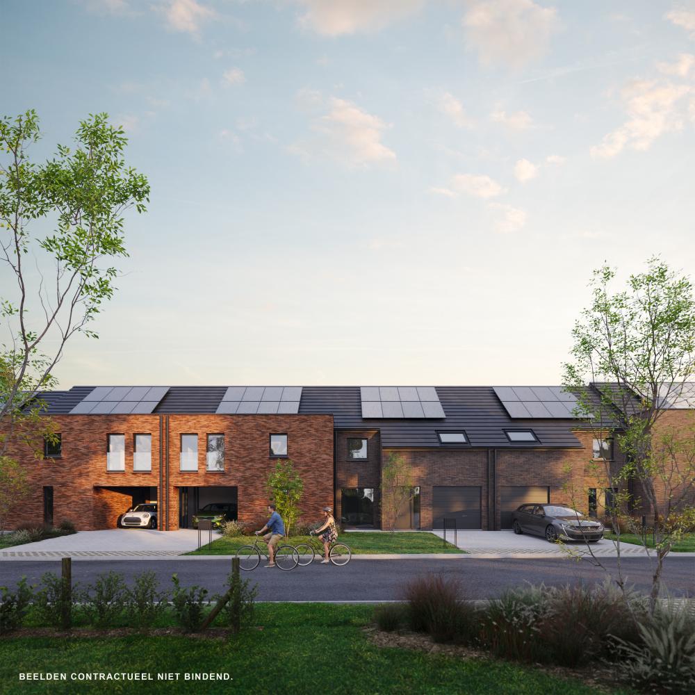 Elke woning wordt voorzien van een garage of carport en oprit. Zo ben je steeds verzekerd van een veilige plek voor jouw voertuig.